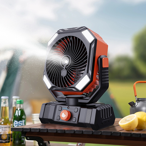 Venta caliente 10000mAh Ventilador para acampar al aire libre con luz LED